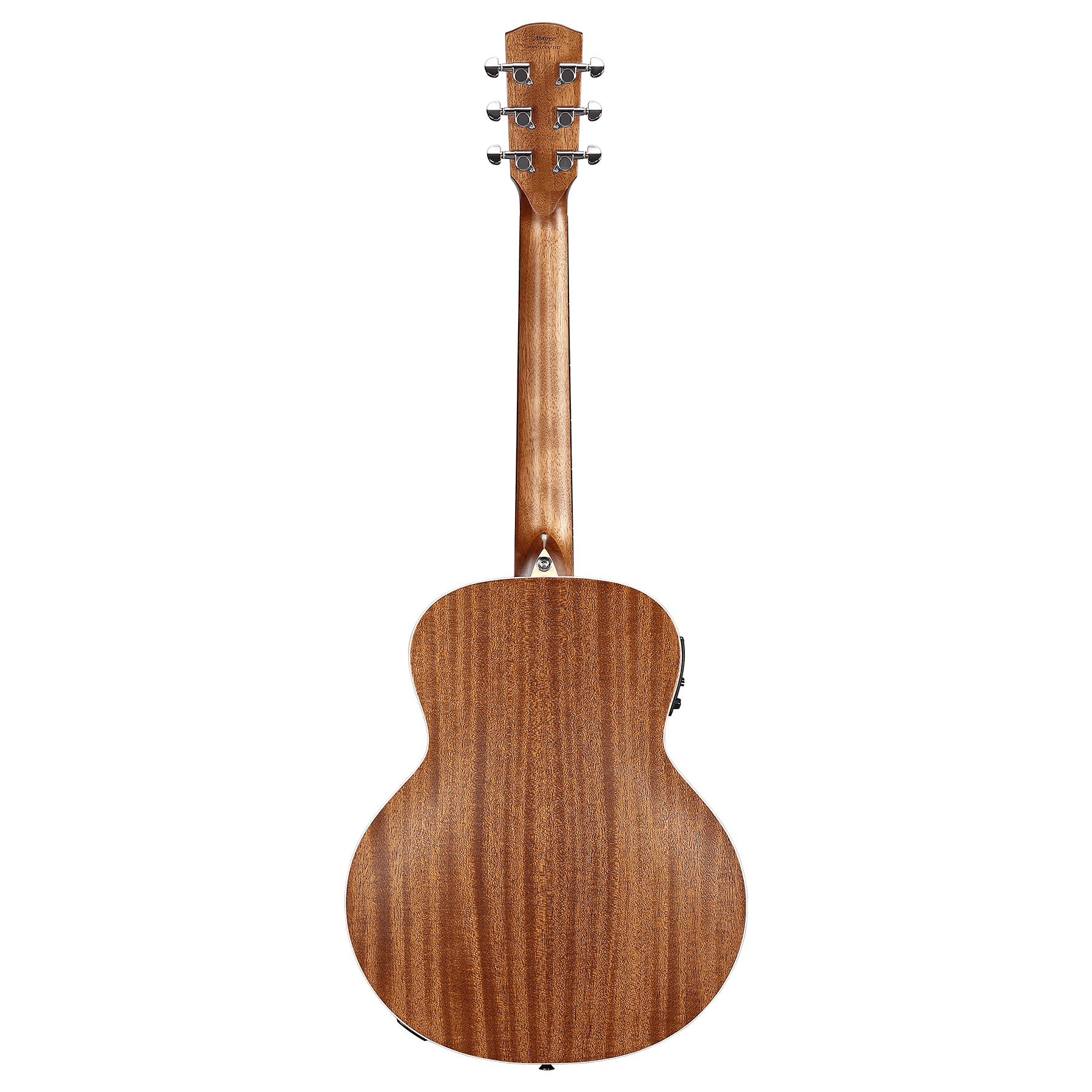 Alvarez ALJ2E Little Jumbo travel guitar with Sitka spruce top, African mahogany back and sides, pickup, and gig bag – Natural Satin