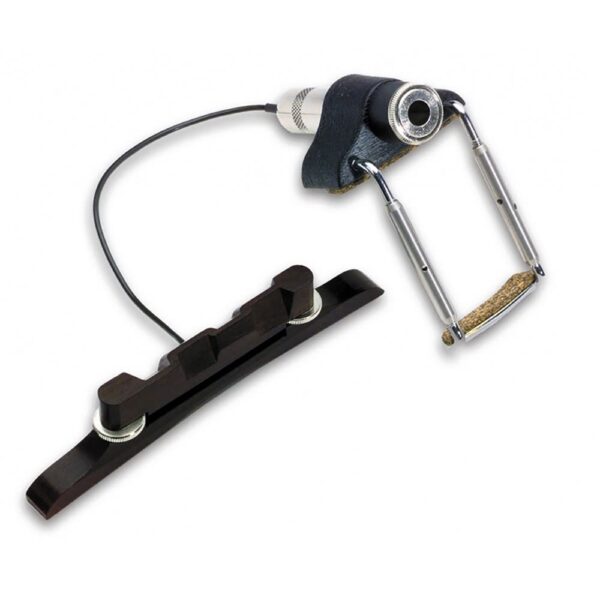 The M-100 consists of a piezo-ceramic pickup element that is embedded in an adjustable ebony replacement bridge.