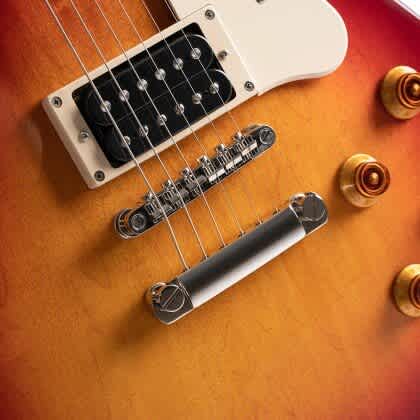 The Classic Rock Series delivers the look, feel and performance of the much sought-after vintage instruments from the Golden Era of electric guitars. At the heart of each CR Series guitar is the specially designed ClassicRocker pickups for an authentic vintage rock sound and response. Classic Design The CR100’s classic design fearures a single cutaway body with carved maple top. Powersound Pickups The Powersound pickups provide classic humbucker punch and tone with a quality/value quotient that cannot be beat. Tune-O-Matic Bridge with Stop Tailpiece CR100 is equipped with a Tune-O-Matic bridge and stop tailpiece which provides enhanced sustain as well as tuning stability and accurate intonation.