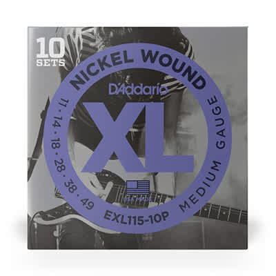 D’Addario EXL115-10P Nickel Wound Blues/Jazz Rock Electric Guitar Strings 11-49- 10pk