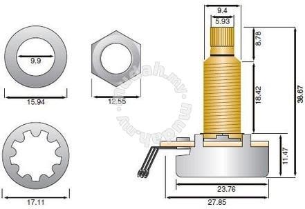 DiMarzio EP1201L 500k Potentiometer (Long Shaft) w/mounting Hardware quantity