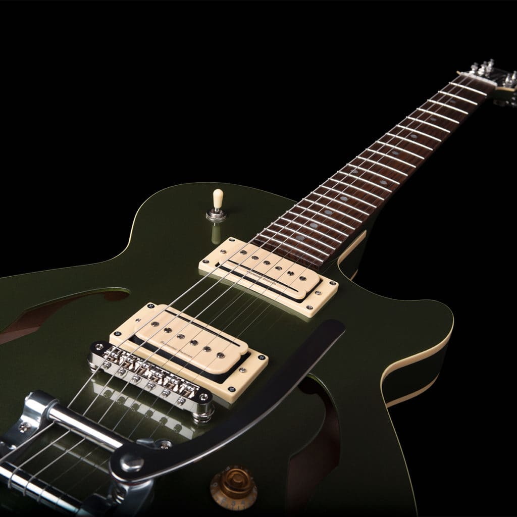 Looking for a classic archtop that can do it all? Look no further than the Godin Montreal premiere LTD. With a never-before-seen desert green finish, this Montreal Premiere LTD is sure to turn heads. With 2 x Seymour Duncan P-Rails, this limited-run guitar offers the ability to produce humbucker, P90, and single-coil sounds from a single pickup.