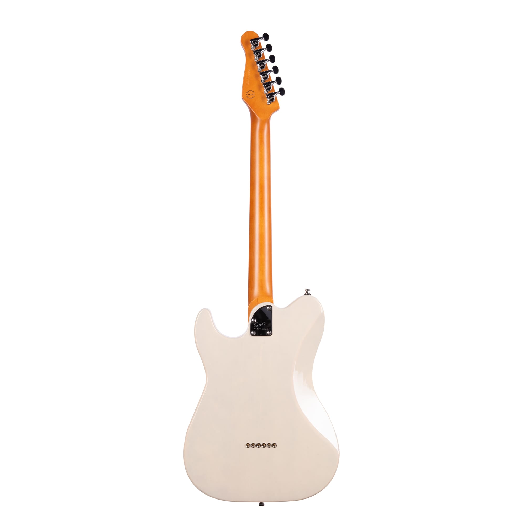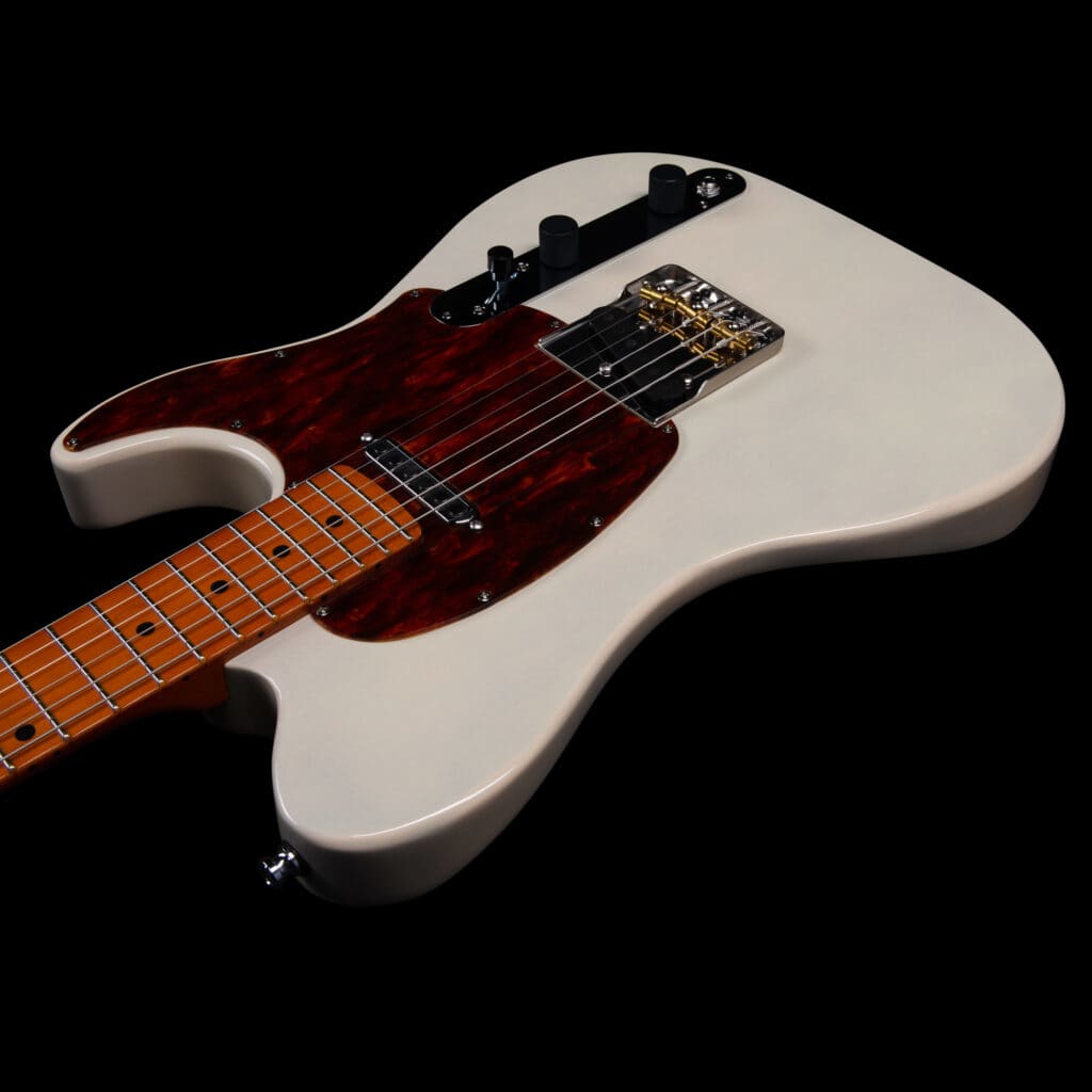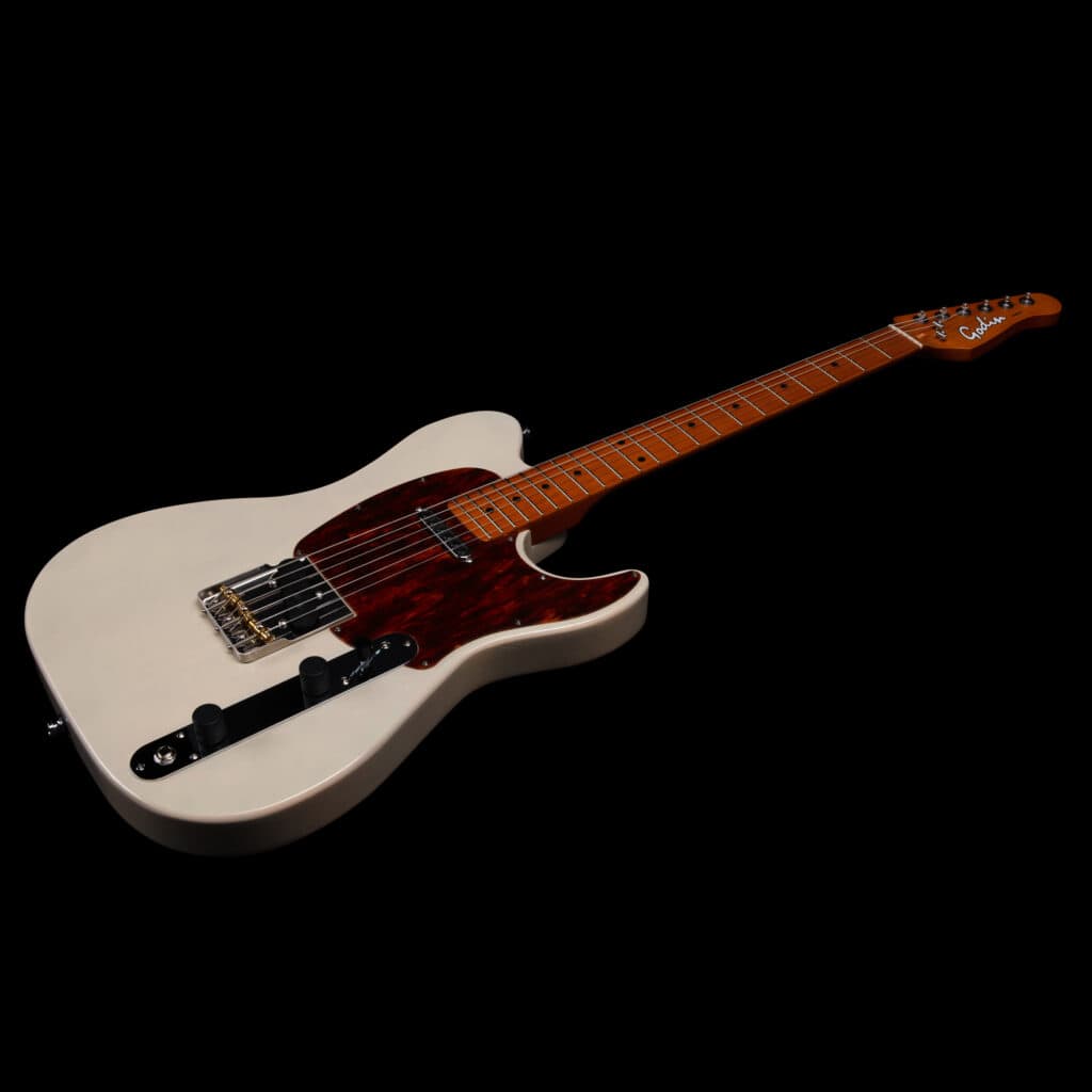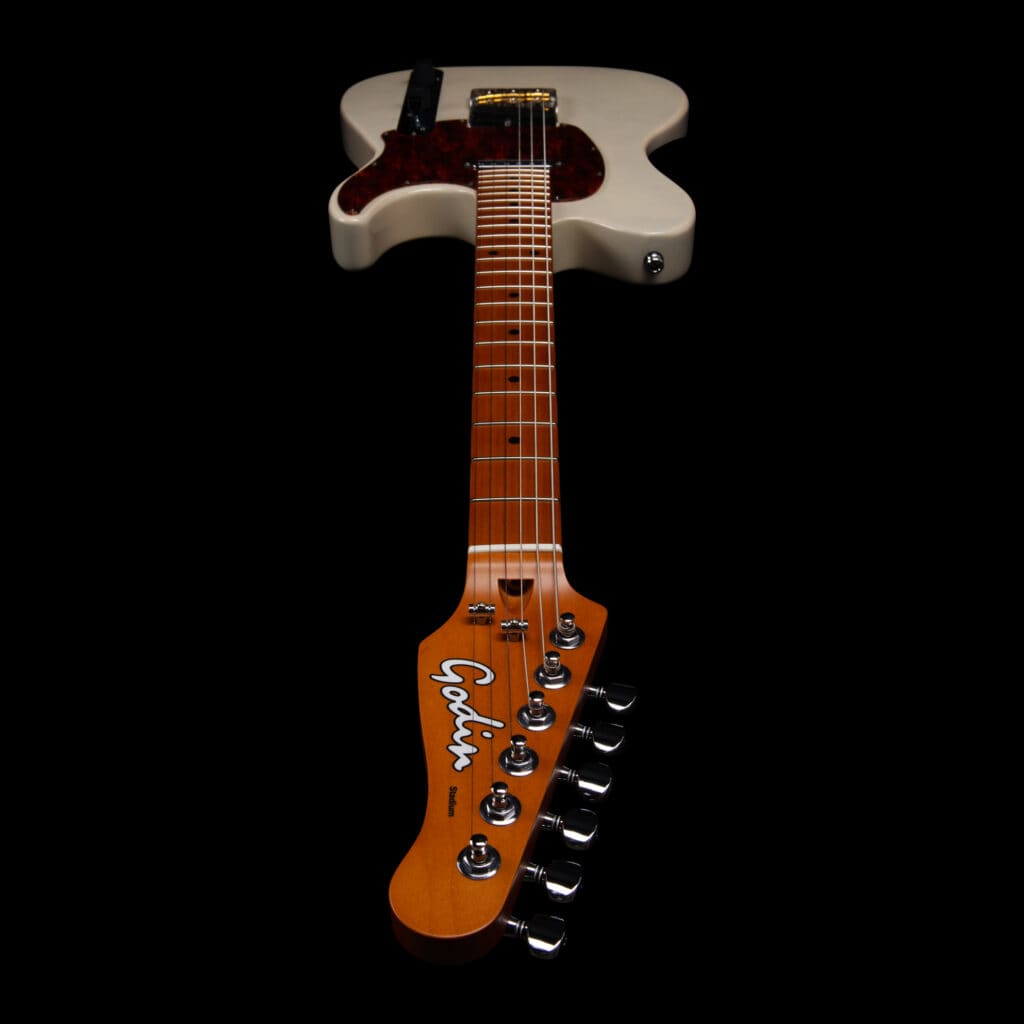 The TV Jones Starwood at the neck produces a fat, warm tone with a dynamic and transparent top end and just the right amount of spank! The Lollar T Special at the bridge is punchy and powerful. These pickups are controlled by a plate-mounted three-way switch and volume and tone controls. Together, this combo serves up a delicious tone and is hum-free in the middle switch position. Rounding out the package is the Godin Custom-T Bridge with brass saddles that are fully adjustable for precise intonation.