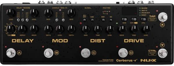 The NUX Cerberus is a multi-function effects pedal that can be used stand-alone or with the 4-cable method. It comes packed with extraordinary features including inside routing, IR loader, analog overdrive & distortion and digital effects.