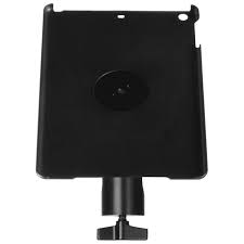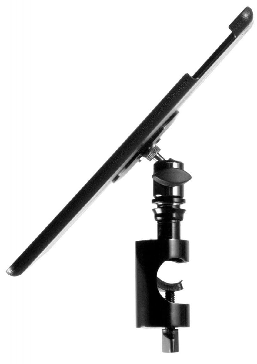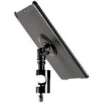 On-Stage TCM9361 Quick disconnect iPad Air mounting system with Snap-On cover – black. Includes round mounting clamp for tubing/piping 21 mm to 30 mm. Mounts to microphone stands, other stage gear, and everyday objects/ surfaces.