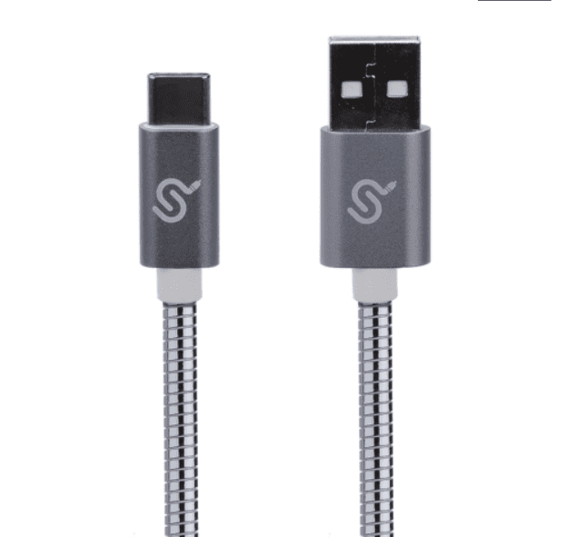 / PrimeCables® USB 2.0A to USB-C Charging/Sync Metal Braided cable Up to 3A charging 3Ft -Space Grey USB Type-C Cable 56K ohm Pull-up Resistor, Ready for Quick Charging